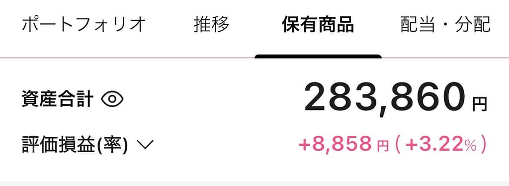 - 積立NISA:283,860円(評価損益 +8,858円)